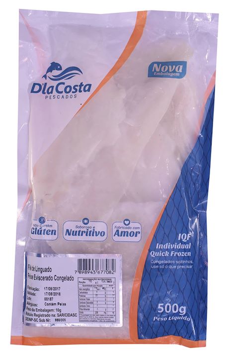 Descrição do Produto: Filé de Linguado Eviscerado IQFEmbalagem: 500gCaixa: 15kg / 7,5kgCódigo de Barras: 7898943677082NCM: 03033300