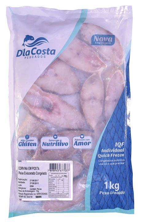 Descrição do Produto: Corvina em Posta Eviscerado IQFEmbalagem: 1kgCaixa: 18kg / 12kgCódigo de Barras: 7898943677037NCM: 03038910