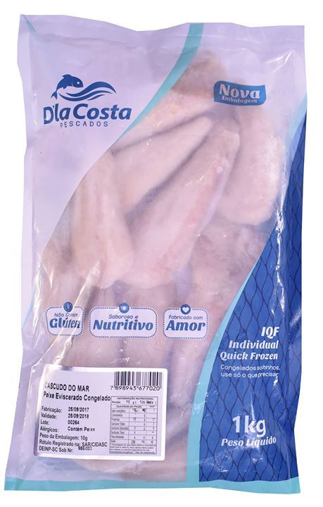 Descrição do Produto: Cascudo do Mar Eviscerado IQF Embalagem: 1kgCaixa: 18kg / 12kgCódigo de Barras: 7898943677020NCM: 03044990